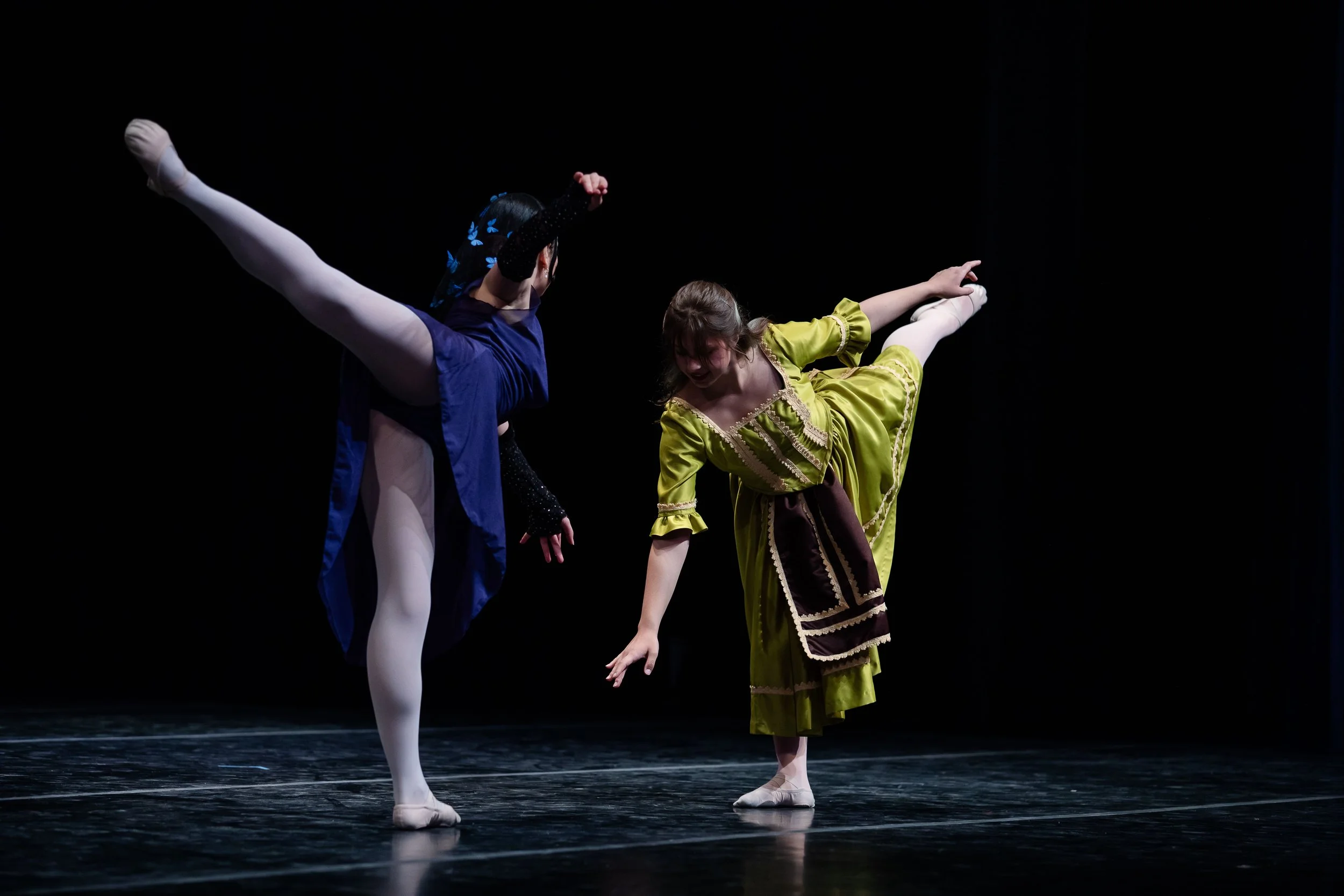 In these classes, dancers continue to refine their technique and artistry. Intermediate Level A emphasizes clean execution of foundational steps, with attention to precision, musicality, and strength. Intermediate Level B builds on this foundation, introducing more complex movements, combinations, and increased performance quality. Dancers are encouraged to challenge themselves while deepening their understanding of classical ballet vocabulary and alignment.